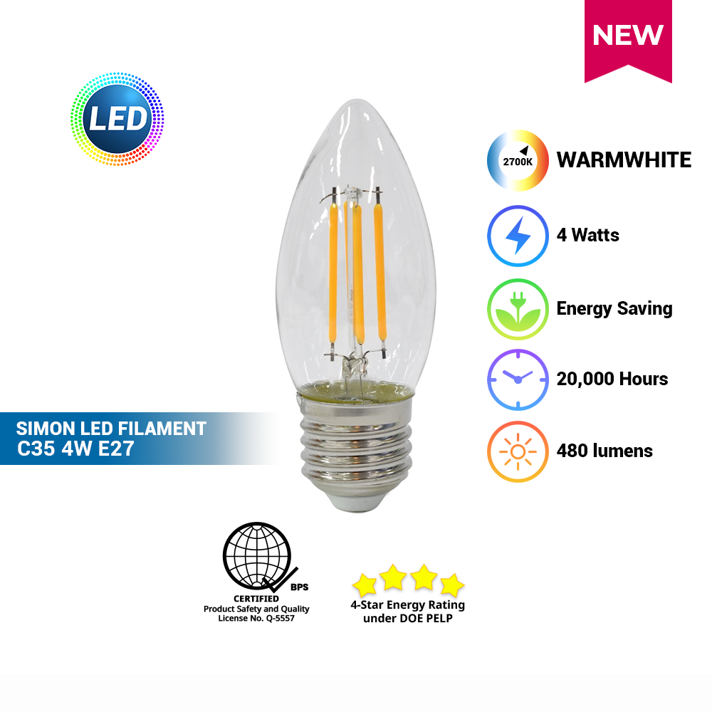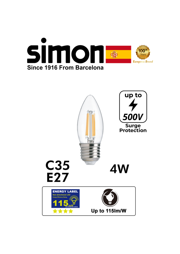 SIMON LED Filament C35 Clear 4W E27